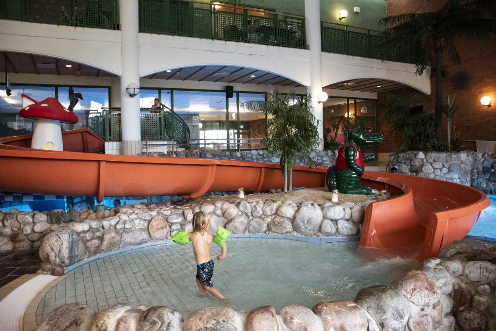 I den större poolen är det djupare, här finns strömmar, vattenstrålar, akvarium, en bubbelpool och värmepool. Från denna del kan du simma ut till vår utomhuspool som är öppen året om.